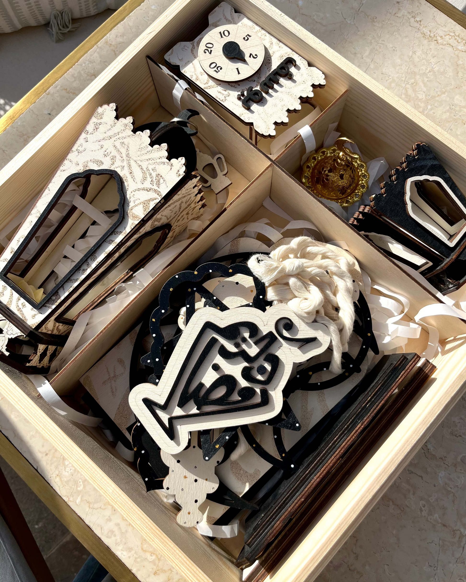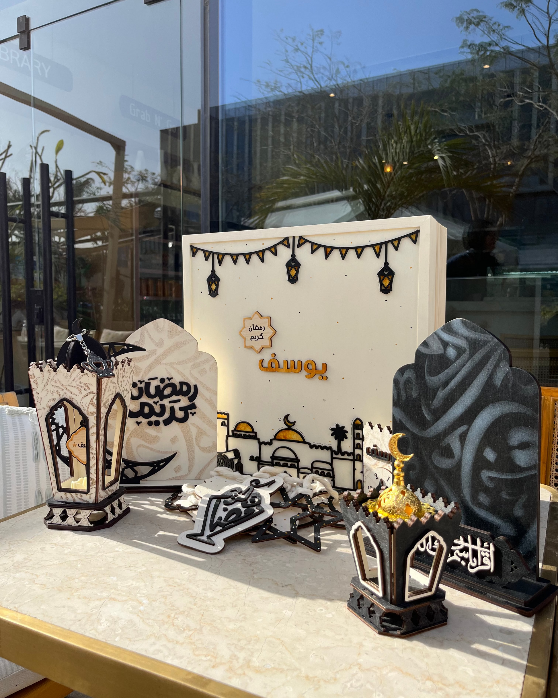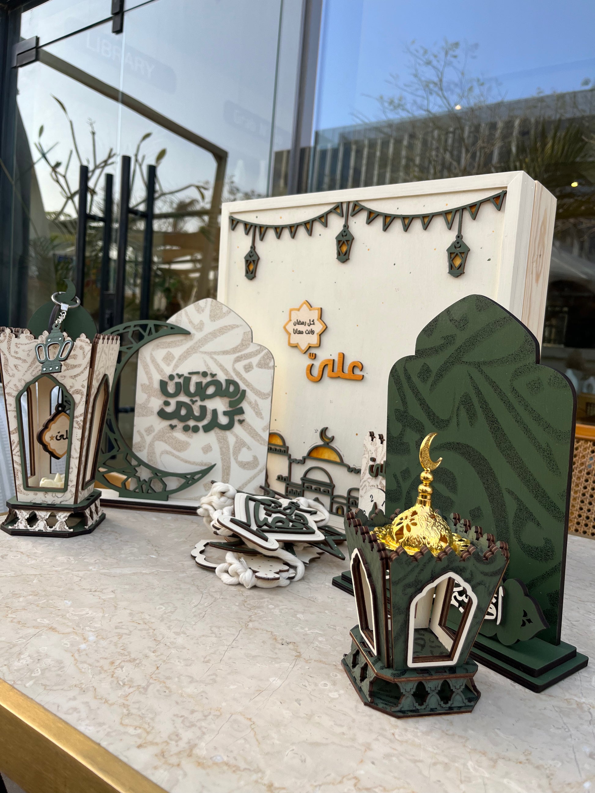 فانوس الخط العربي + هلال (واجهين مختلفين ) + حصاله +مبخره + زينه رمضان + حامل مصحف + ميداليه