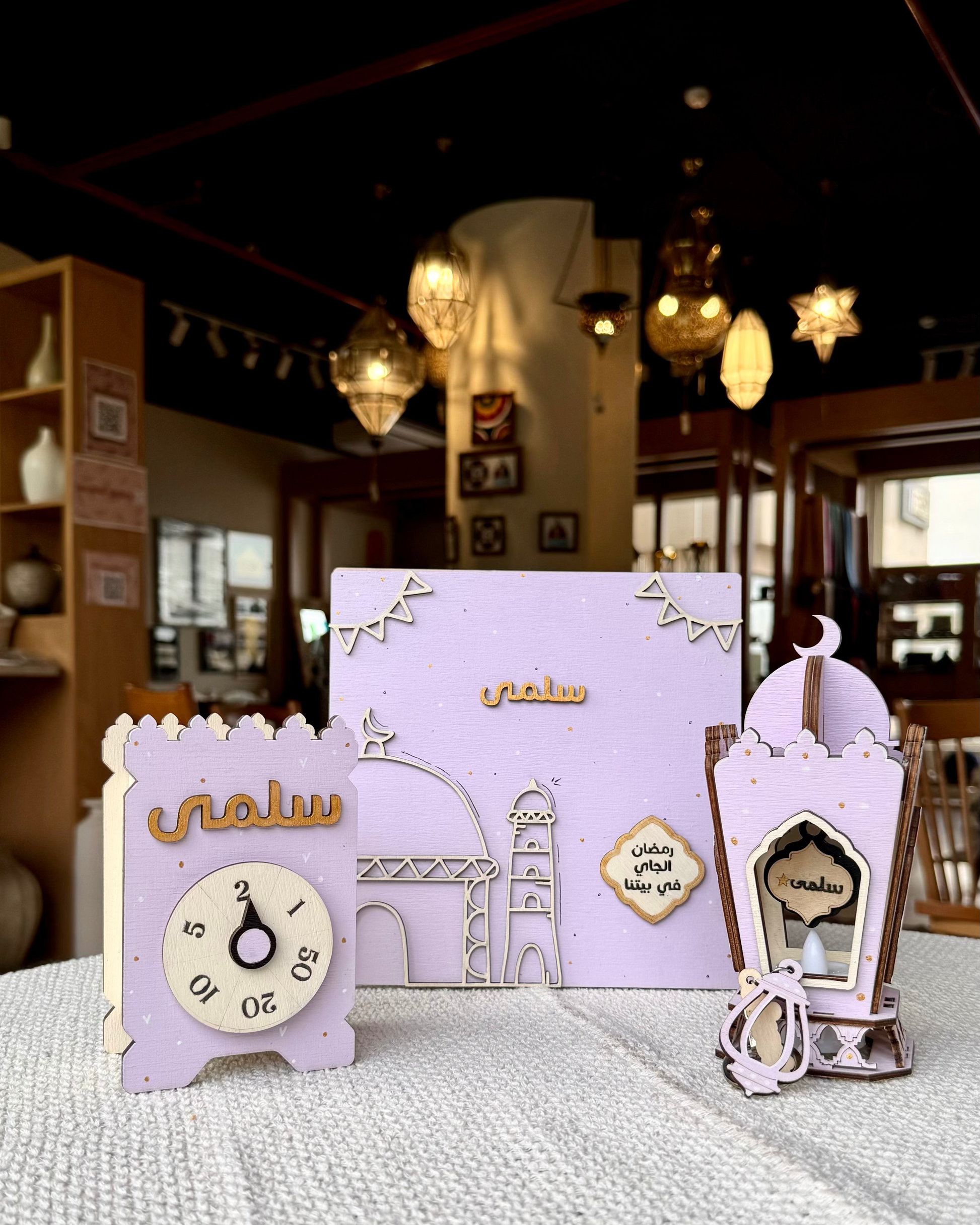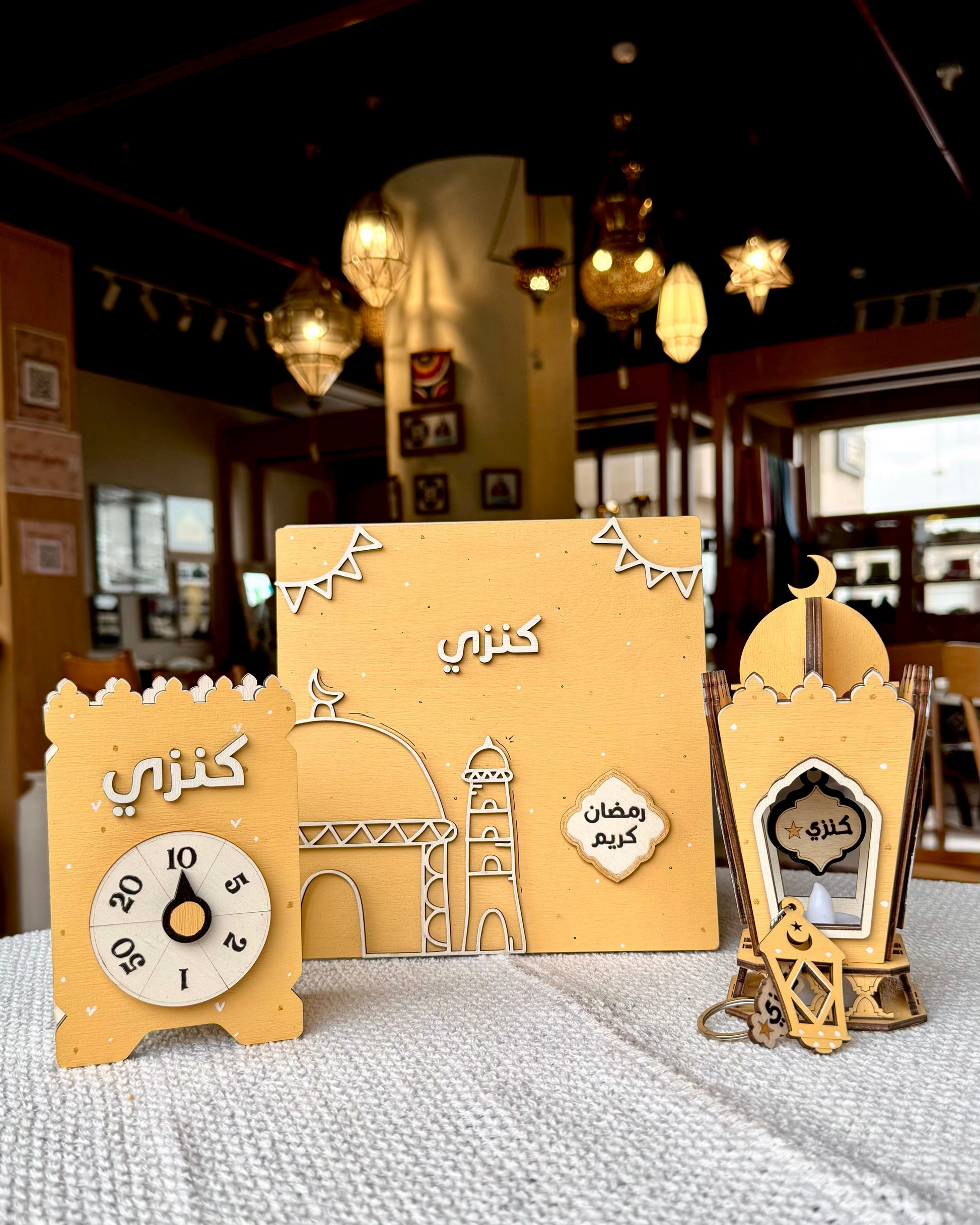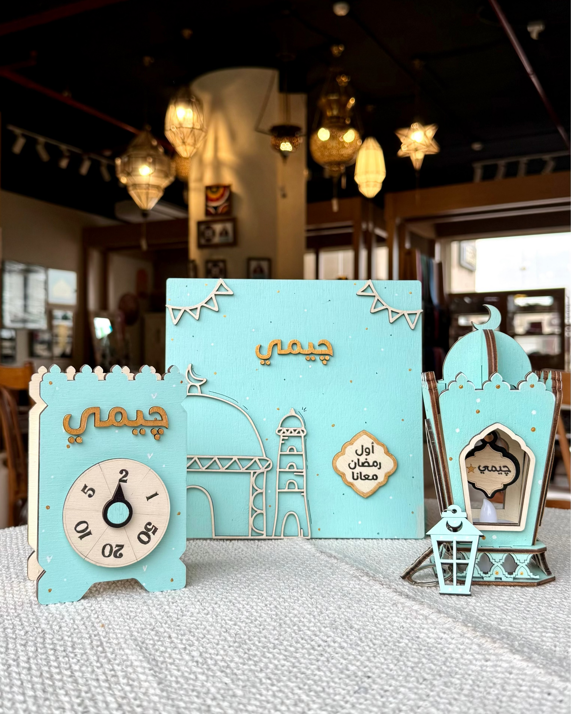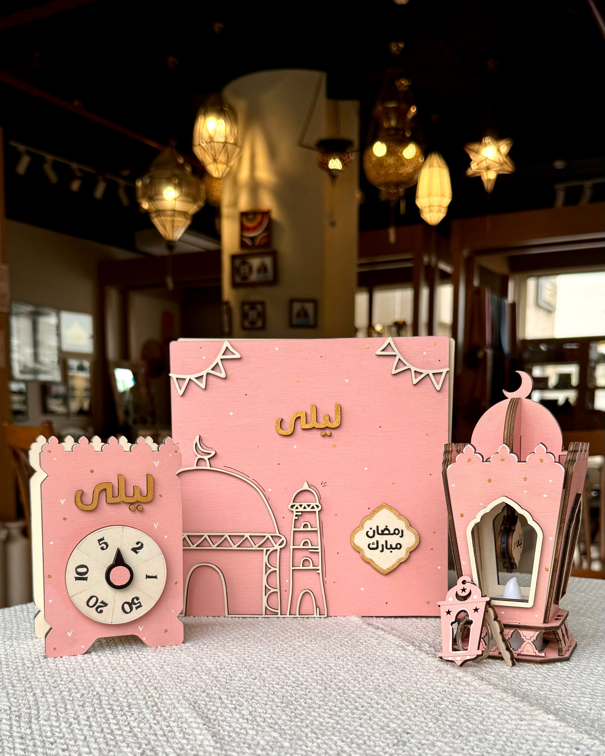 محتوياته: بوكس خشب بتصميم رمضاني + حصالة + فانوس + ميدالية هدية، ومعاهم كارت خربشة فيه مفاجأة .