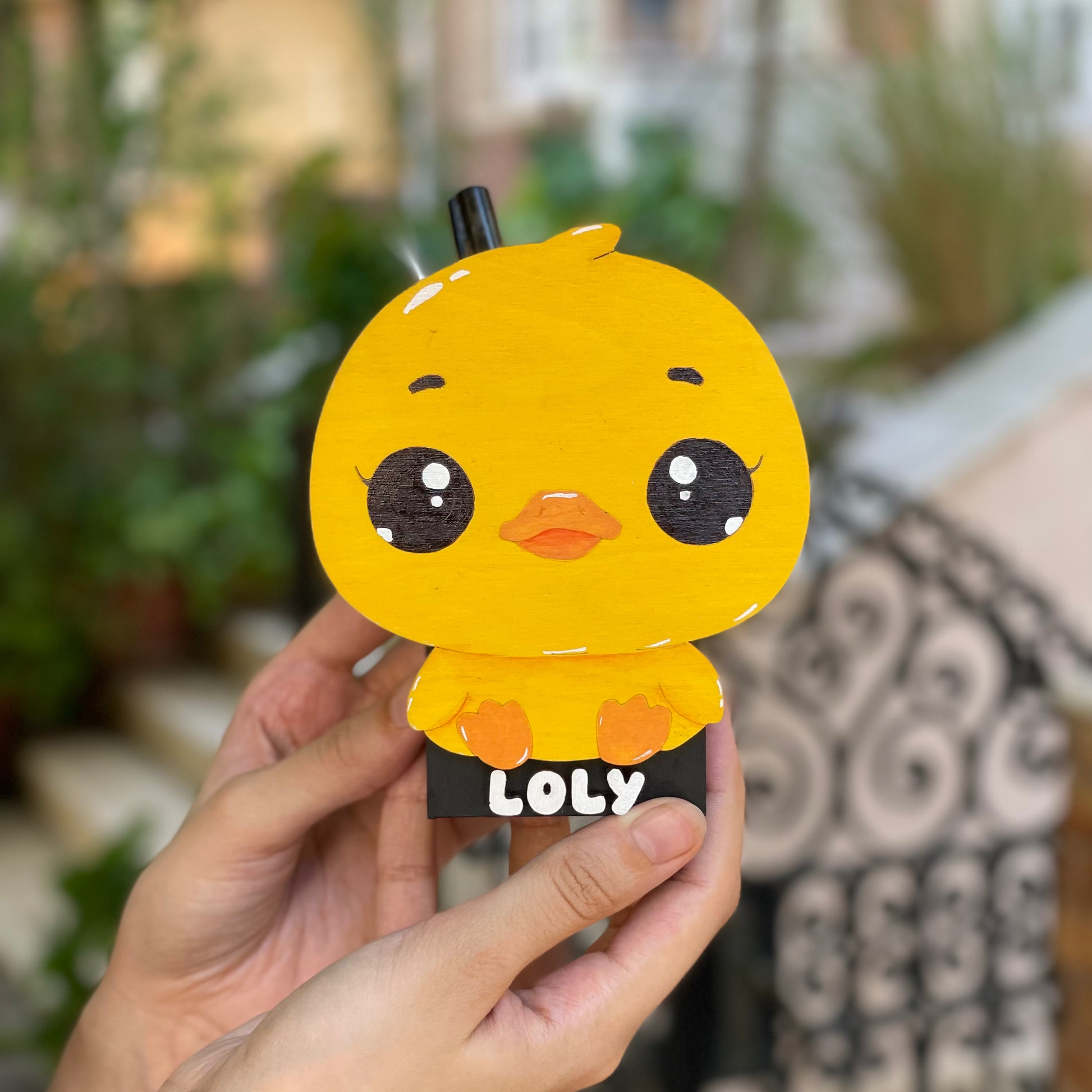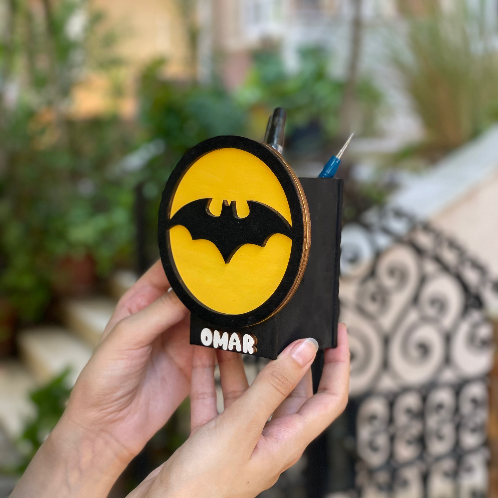 This personalized wooden pen holder is handcrafted with layered wood details and engraved with your child’s name.